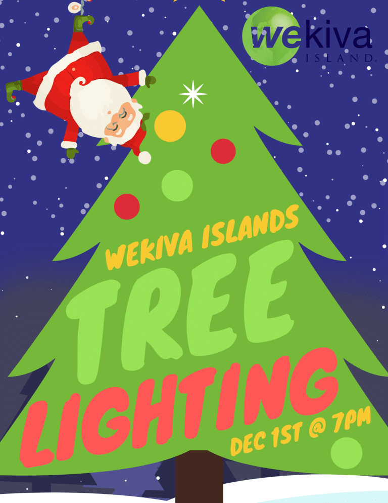 Join us at Wekiva Island as Santa and Mrs. Claus officially kick off the holiday season by lighting our HUGE 24-foot-tall Christmas tree at 7 p.m. The snow flurries will be flying, and we will have live music and plenty of holiday cheer. Don’t forget to bring a new, unwrapped toy to donate to Kids House of Seminole County.